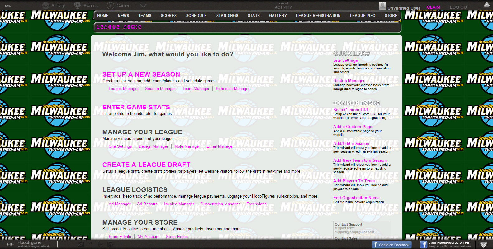 The HoopFigures Admin section is being revamped! The next time you login you will be greeted with a New League Setup Wizard.