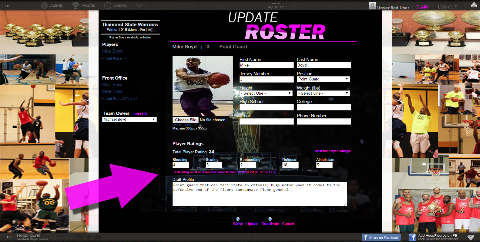 Easy-to-use Admin SectionWednesday, February 10, 2016 The New Player ProfileFriday, January 29, 2016 Player RatingsFriday, January 29, 2016 New Activity FeedFriday, January 22, 2016 New Top ToolbarThursday, January 21, 2016 The New HoopFigures!!Monday, January 18, 2016 Revamped Admin Section!Tuesday, February 24, 2015